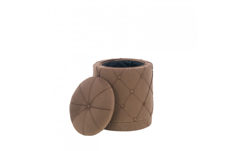 Оригинальная модель пуфа цилиндрической формы, украшен втяжками и пуговицами, имеет ящик для мелочей.