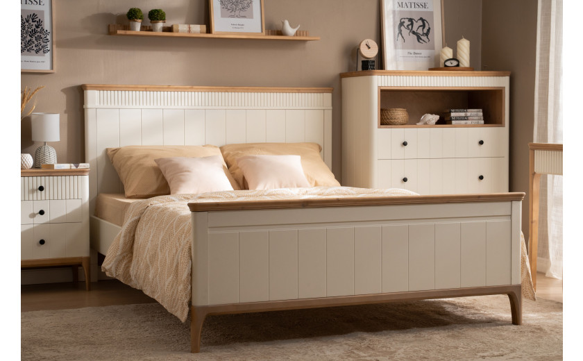 Кровать изготовлена из массива сосны. Цена указана в исполнении бесцветный лак. Стоимость изделия в другом цвете зависит от вида покрытия (бейц, эмаль). Коллекция мебели из сосны фабрики Timberica (Тимберика).