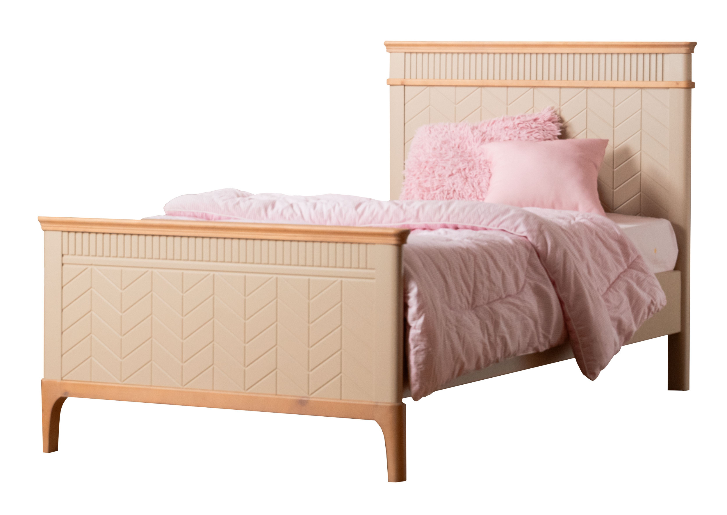 Кровать изготовлена из массива сосны. Цена указана в исполнении бесцветный лак. Стоимость изделия в другом цвете зависит от вида покрытия (бейц, эмаль). Коллекция мебели из сосны фабрики Timberica (Тимберика).