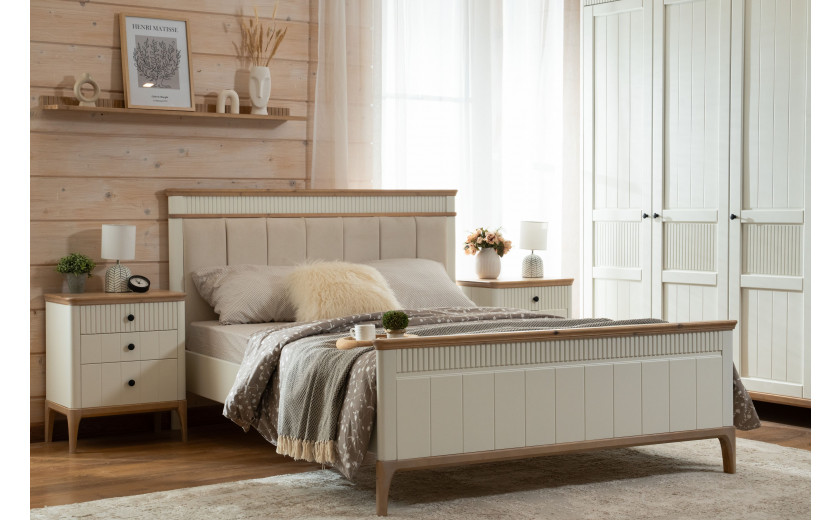 Кровать изготовлена из массива сосны. Цена указана в исполнении бесцветный лак. Стоимость изделия в другом цвете зависит от вида покрытия (бейц, эмаль). Коллекция мебели из сосны фабрики Timberica (Тимберика).