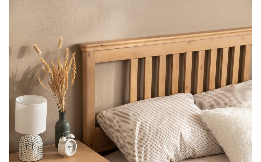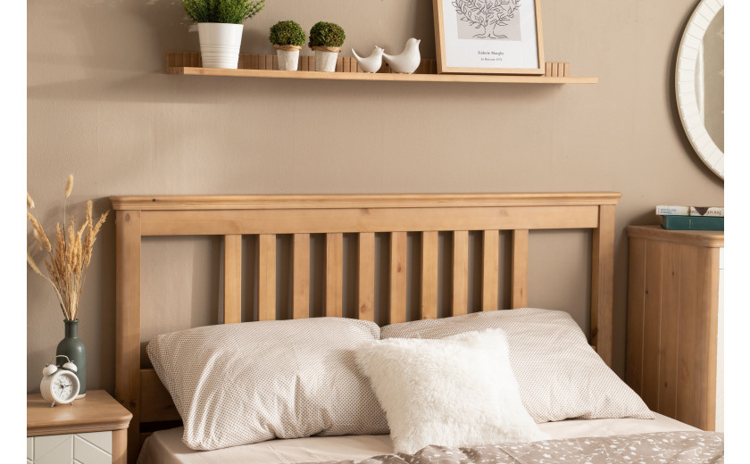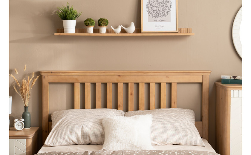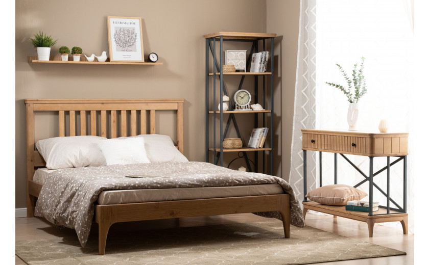 Кровать изготовлена из массива сосны. Цена указана в исполнении бесцветный лак. Стоимость изделия в другом цвете зависит от вида покрытия (бейц, эмаль). Коллекция мебели из сосны фабрики Timberica (Тимберика).