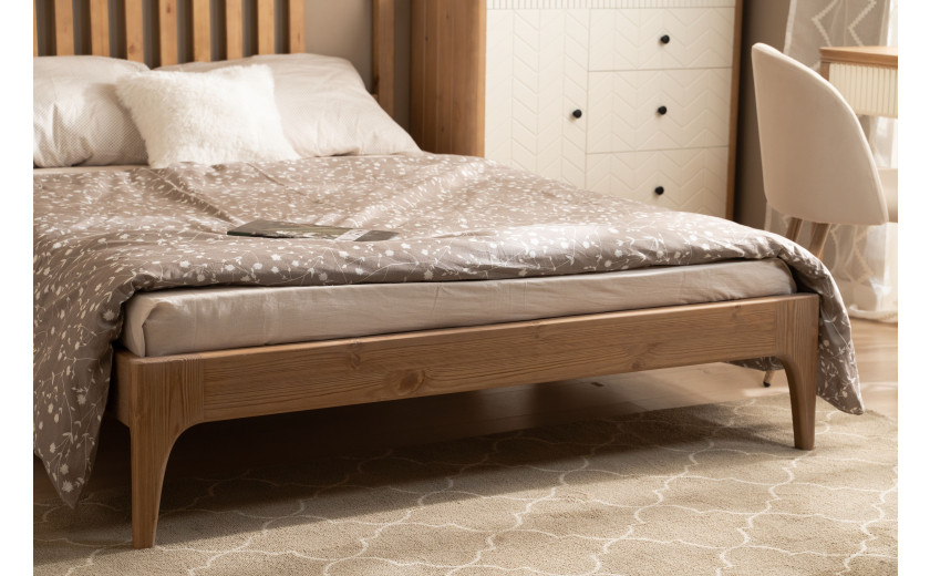 Кровать изготовлена из массива сосны. Цена указана в исполнении бесцветный лак. Стоимость изделия в другом цвете зависит от вида покрытия (бейц, эмаль). Коллекция мебели из сосны фабрики Timberica (Тимберика).