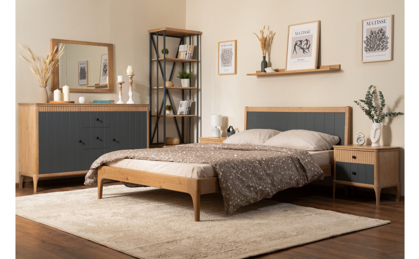 Кровать изготовлена из массива сосны. Цена указана в исполнении бесцветный лак. Стоимость изделия в другом цвете зависит от вида покрытия (бейц, эмаль). Коллекция мебели из сосны фабрики Timberica (Тимберика).