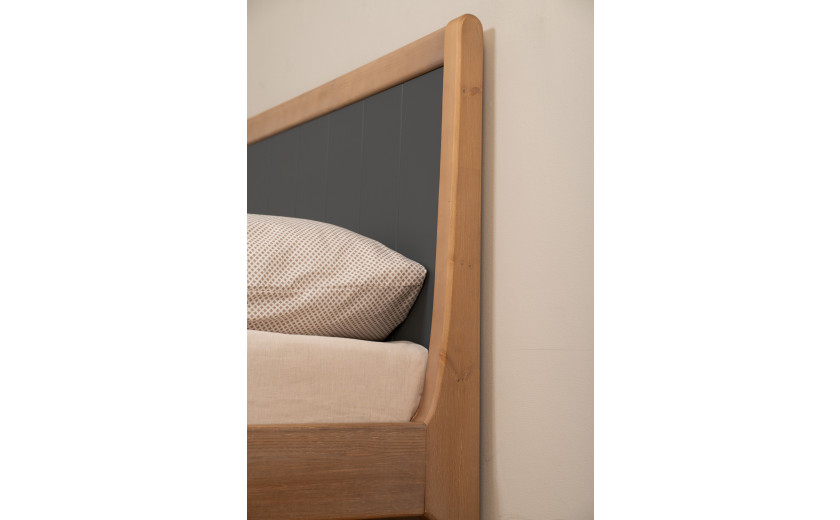 Кровать изготовлена из массива сосны. Цена указана в исполнении бесцветный лак. Стоимость изделия в другом цвете зависит от вида покрытия (бейц, эмаль). Коллекция мебели из сосны фабрики Timberica (Тимберика).