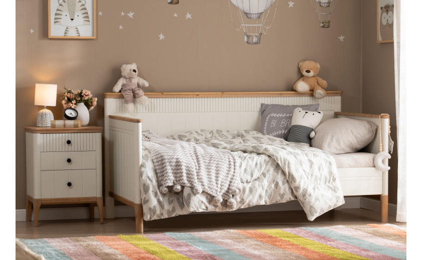 Тахта изготовлена из массива сосны. Цена указана в исполнении бесцветный лак. Стоимость изделия в другом цвете зависит от вида покрытия (бейц, эмаль). Коллекция мебели из сосны фабрики Timberica (Тимберика).