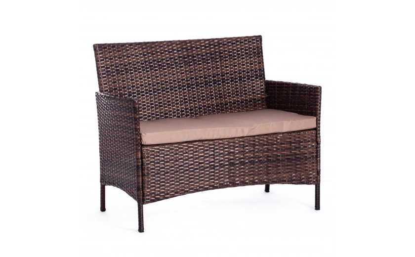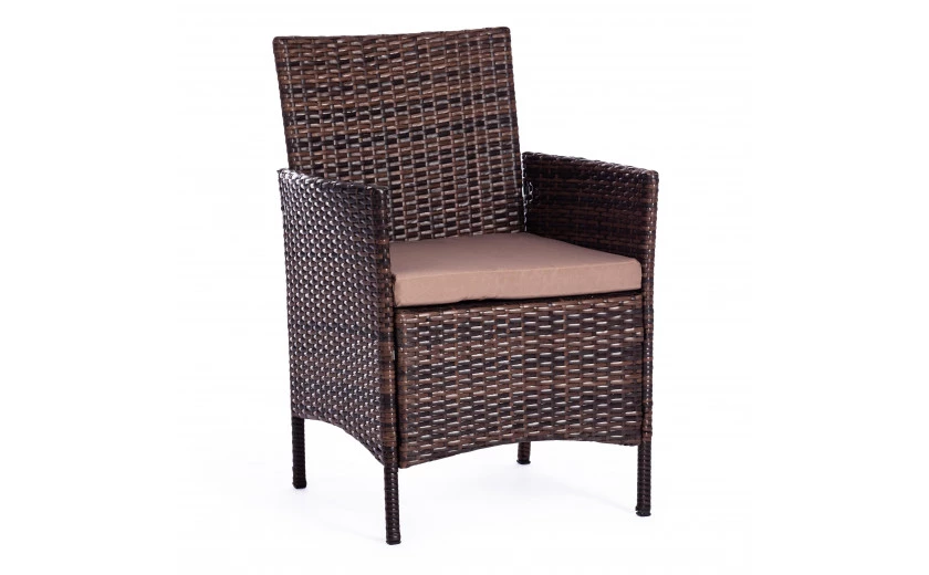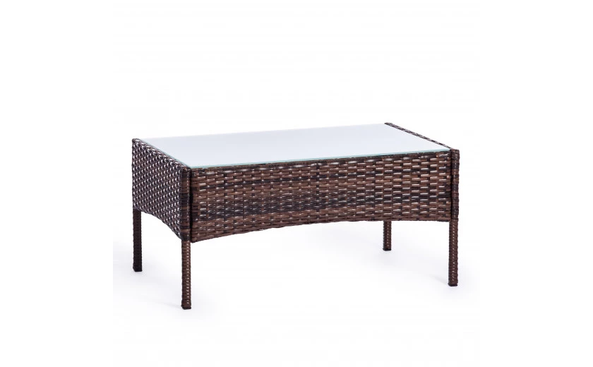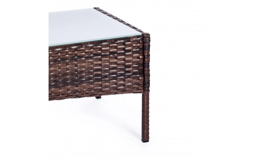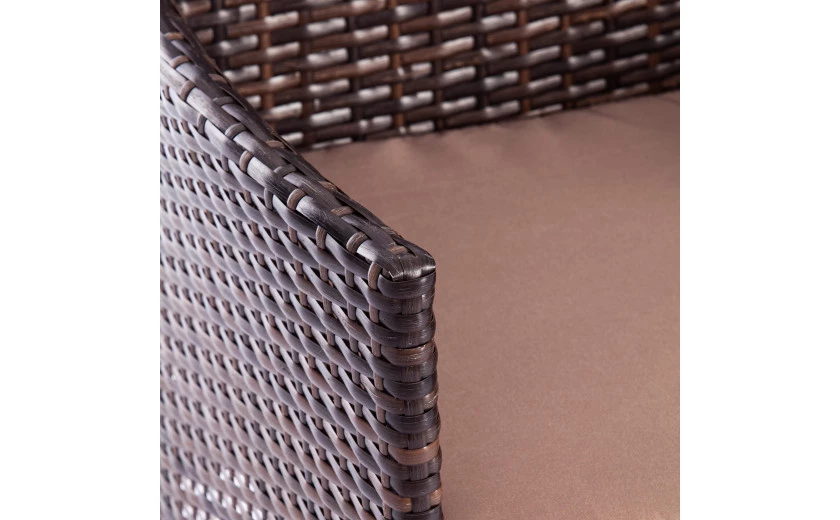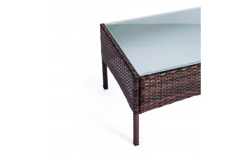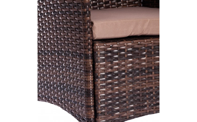 Легкость и простота дизайна комплекта садовой мебели «Лаундж сет» из коллекции LOUNGE помогут создать атмосферу уюта и спокойствия на летней веранде, террасе или в саду. Изысканный и лаконичный набор будет прекрасно смотреться в любом загородном доме, кафе или ресторане, четко передавая безупречный вкус своих владельцев. В комплект входят четыре предмета мебели - диван, два кресла и стол. Устойчивый каркас из металла прочен и надежен. Удобная спинка и вместительное сиденье изготовлены из искусственного ротанга. Такой материал устойчив к воздействиям влаги, перепадам температур и ультрафиолету. Мягкие подушки выполнены из полиэстра с пропиткой от дождя. Столешница из стекла износостойка и долговечна. При длительной эксплуатации поверхность не меняет форму и не истирается, выдерживает большие нагрузки, не требует сложного ухода. Благодаря своему небольшому весу гарнитур легко перемещается в пространстве. Сочетание темно-коричневого искусственного ротанга и серой ткани выглядит стильно и элегантно. Мебель для отдыха практична и оригинальна, удивит вас своей износостойкостью, привлекательностью и надежностью, станет основным акцентом в дизайне вашего загородного дома или кафе. Комплект поставляется в разобранном виде. Необходима несложная сборка по прилагаемой инструкции.