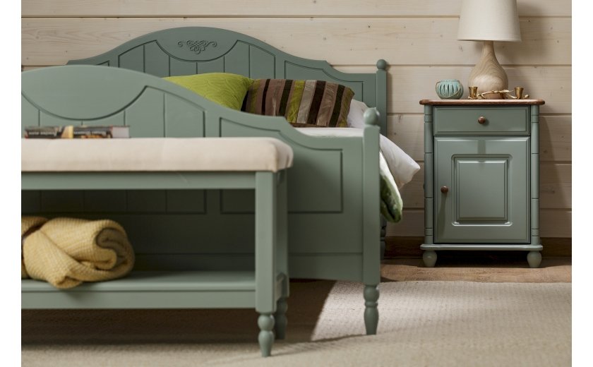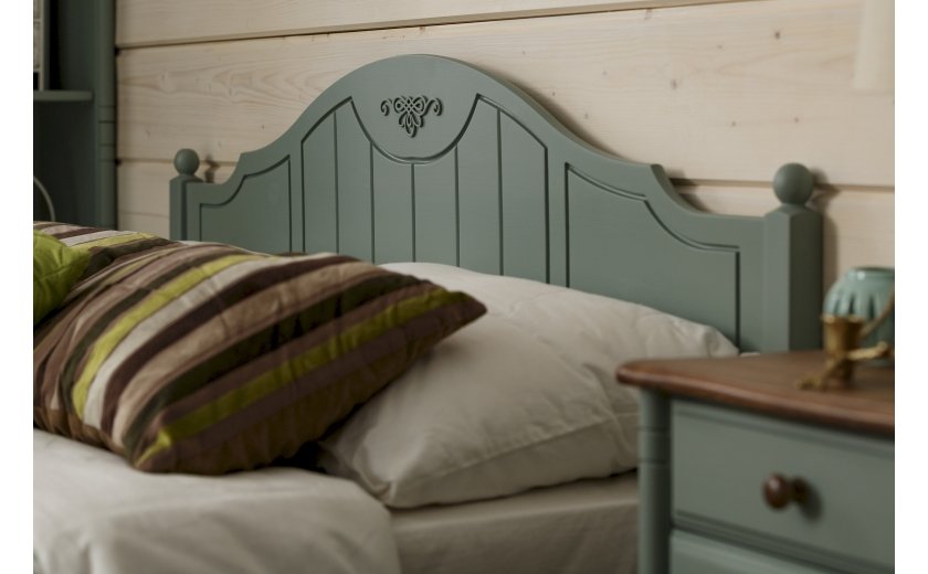 Кровать изготовлена из массива сосны. Цена указана в исполнении бесцветный лак. Стоимость изделия в другом цвете зависит от вида покрытия (бейц, эмаль) и типа обработки (эффекты старения – патина, скрэп, кракле). Коллекция мебели из сосны фабрики Timberica (Тимберика).