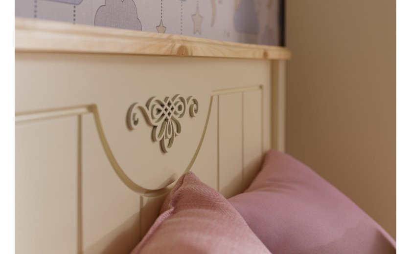 Кровать изготовлена из массива сосны. Цена указана в исполнении бесцветный лак. Стоимость изделия в другом цвете зависит от вида покрытия (бейц, эмаль) и типа обработки (эффекты старения – патина, скрэп, кракле). Коллекция мебели из сосны фабрики Timberica (Тимберика).