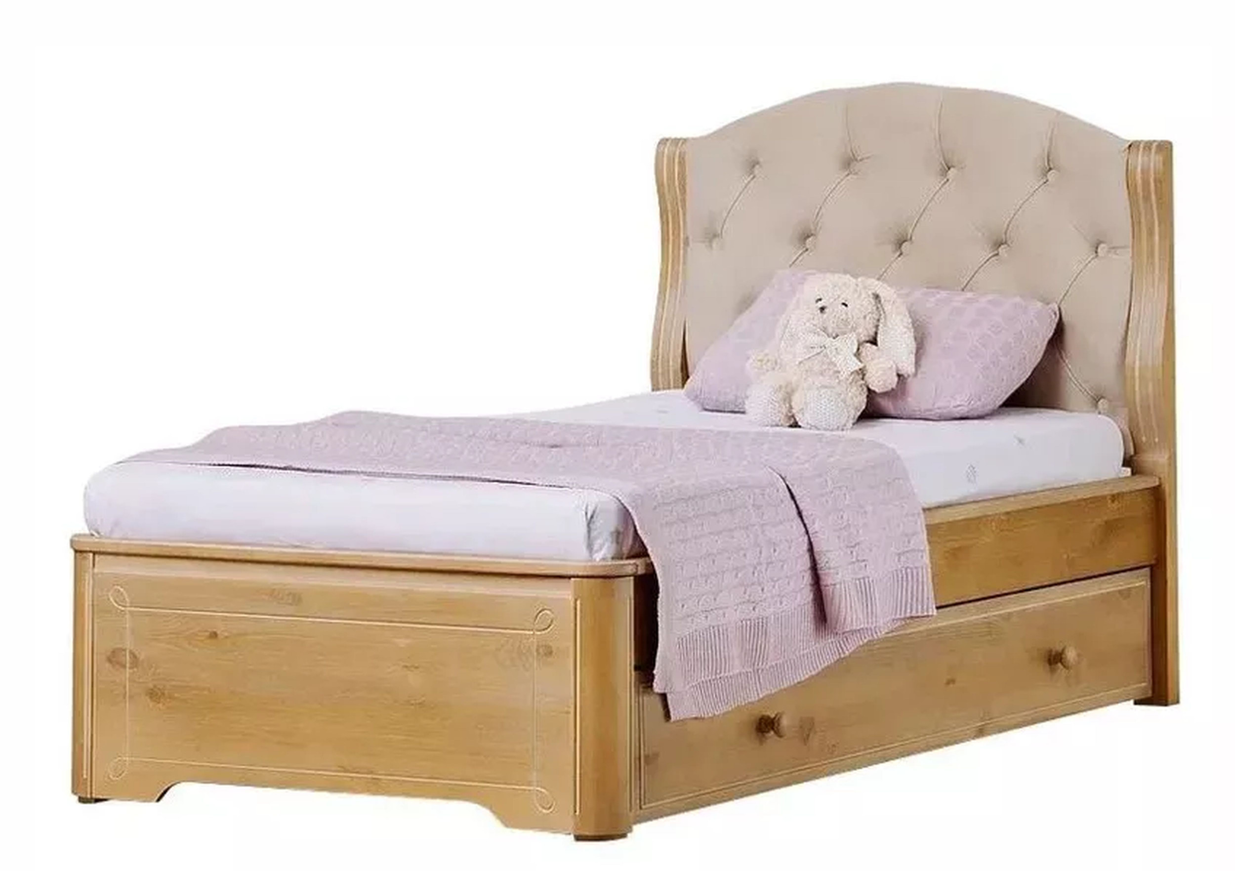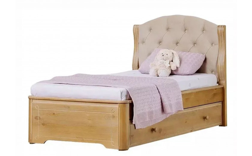 Кровать изготовлена из массива сосны. Цена указана в исполнении бесцветный лак. Стоимость изделия в другом цвете зависит от вида покрытия (бейц, эмаль) и типа обработки (эффекты старения – патина, скрэп, кракле). Коллекция мебели из сосны фабрики Timberica (Тимберика).