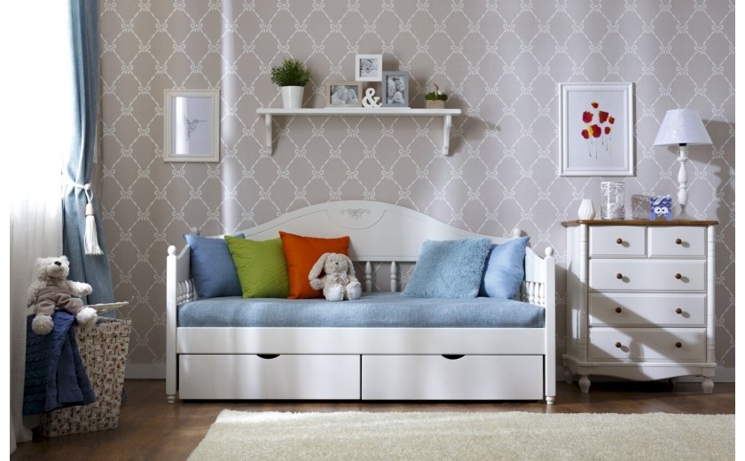 Тахта изготовлена из массива сосны. Ящики входят в комплектацию. Цена указана в исполнении бесцветный лак. Стоимость изделия в другом цвете зависит от вида покрытия (бейц, эмаль) и типа обработки (эффекты старения – патина, скрэп, кракле). Коллекция мебели из сосны фабрики Timberica (Тимберика).