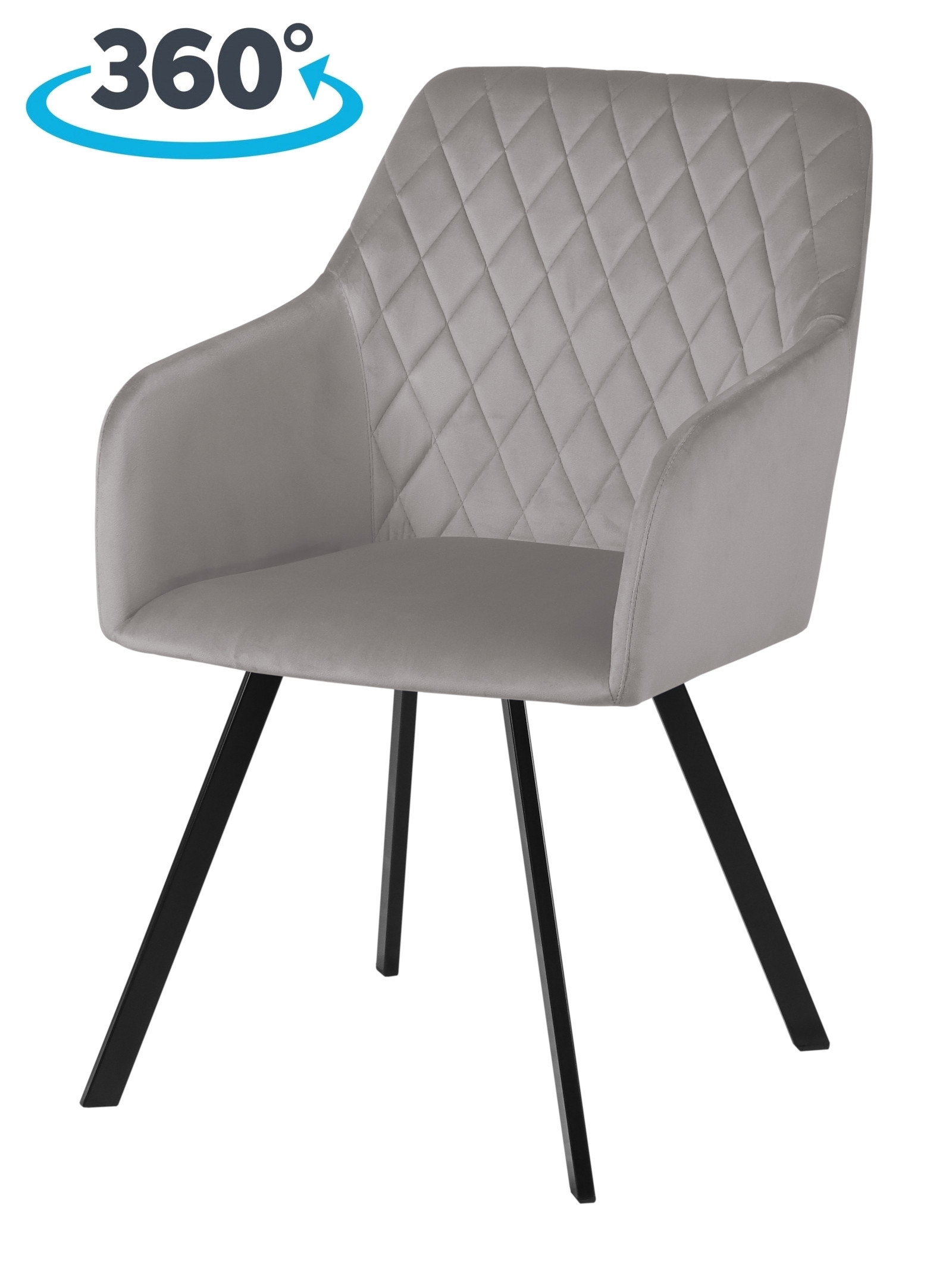Комплект мягких кухонных стульев с подлокотниками на металлокаркасе Барли с поворотным механизмом - это современный стильный дизайн, функциональность, удобство и практичность. Поворотный механизм очень надежен и позволяет вращаться сиденью относительно ножек на 360 градусов. Он спроектирован лучшими инженерами таким образом, чтобы обеспечить комфортную эргономичную посадку и долгий период эксплуатации. Стул не только удобный, но и крепкий, он способен выдерживать ежедневные нагрузки, не теряя при этом свой привлекательный внешний вид. Надежный металлический каркас в основании стула, позволяет выдерживать нагрузку до 120 килограмм. Обивка износоустойчива, не линяет, не скатывается, не впитывает жидкость и легка в уходе. Она обладает эффектом антикоготь, так как велюр очень гладкий и имеет плотную основу, питомцы обычно равнодушны к такой обивке, потому что коготками не получается зацепиться за нити. Благодаря эргономичной посадке, мягкому и сохраняющему тепло велюру, он станет настоящей изюминкой Вашего интерьера и никого не сможет оставить равнодушным. Отличный вариант для интерьеров в скандинавском, современном, минималистическом стиле, а также в стиле лофт и модерн. Стул вращающийся Барли идеально подойдет для кухни, гостиной, спальни, рабочего кабинета, детской комнаты, а также для дачи, офиса, салона красоты, кафе или столовой. Крутящийся стул Барли является универсальным вариантом для любых пространств. Материал сиденья - фанера, металл, пенополиуретан, велюр. Материал ножек - металл. Поворотный механизм на подшипниках. Полная ширина стула - 53 см, ширина сиденья без учета подлокотников в самом широком месте - 43 см, полная глубина стула - 58 см, глубина сиденья - 43 см, высота стула - 84 см, высота сиденья - 46 см. Стулья поставляются в разобранном виде. В комплекте идёт инструкция и крепеж для сборки.