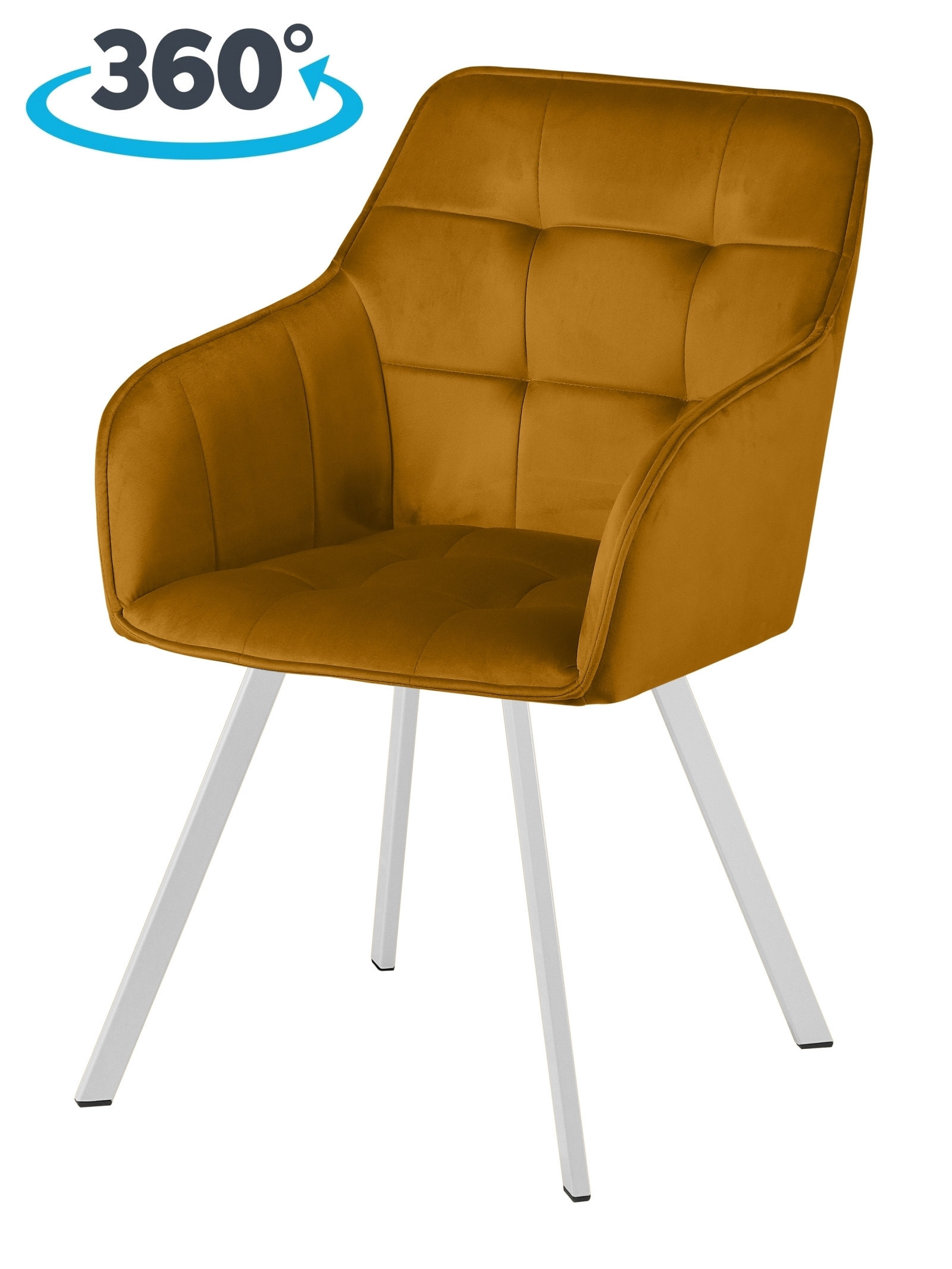 Комплект мягких кухонных стульев с подлокотниками на металлокаркасе Мони с поворотным механизмом - это современный стильный дизайн, функциональность, удобство и практичность. Поворотный механизм очень надежен и позволяет вращаться сиденью относительно ножек на 360 градусов. Он спроектирован лучшими инженерами таким образом, чтобы обеспечить комфортную эргономичную посадку и долгий период эксплуатации. Стул не только удобный, но и крепкий, он способен выдерживать ежедневные нагрузки, не теряя при этом свой привлекательный внешний вид. Надежный металлический каркас в основании стула, позволяет выдерживать нагрузку до 120 килограмм. Обивка износоустойчива, не линяет, не скатывается, не впитывает жидкость и легка в уходе. Она обладает эффектом антикоготь, так как велюр очень гладкий и имеет плотную основу, питомцы обычно равнодушны к такой обивке, потому что коготками не получается зацепиться за нити. Благодаря эргономичной посадке, мягкому и сохраняющему тепло велюру, он станет настоящей изюминкой Вашего интерьера и никого не сможет оставить равнодушным. Отличный вариант для интерьеров в скандинавском, современном, минималистическом стиле, а также в стиле лофт и модерн. Стул вращающийся Мони идеально подойдет для кухни, гостиной, спальни, рабочего кабинета, детской комнаты, а также для дачи, офиса, салона красоты, кафе или столовой. Крутящийся стул Мони является универсальным вариантом для любых пространств. Материал сиденья - фанера, металл, пенополиуретан, велюр. Материал ножек - металл. Поворотный механизм на подшипниках. Полная ширина стула - 53 см, ширина сиденья без учета подлокотников в самом широком месте - 43 см, полная глубина стула - 58 см, глубина сиденья - 43 см, высота стула - 84 см, высота сиденья - 46 см. Стулья поставляются в разобранном виде. В комплекте идёт инструкция и крепеж для сборки.