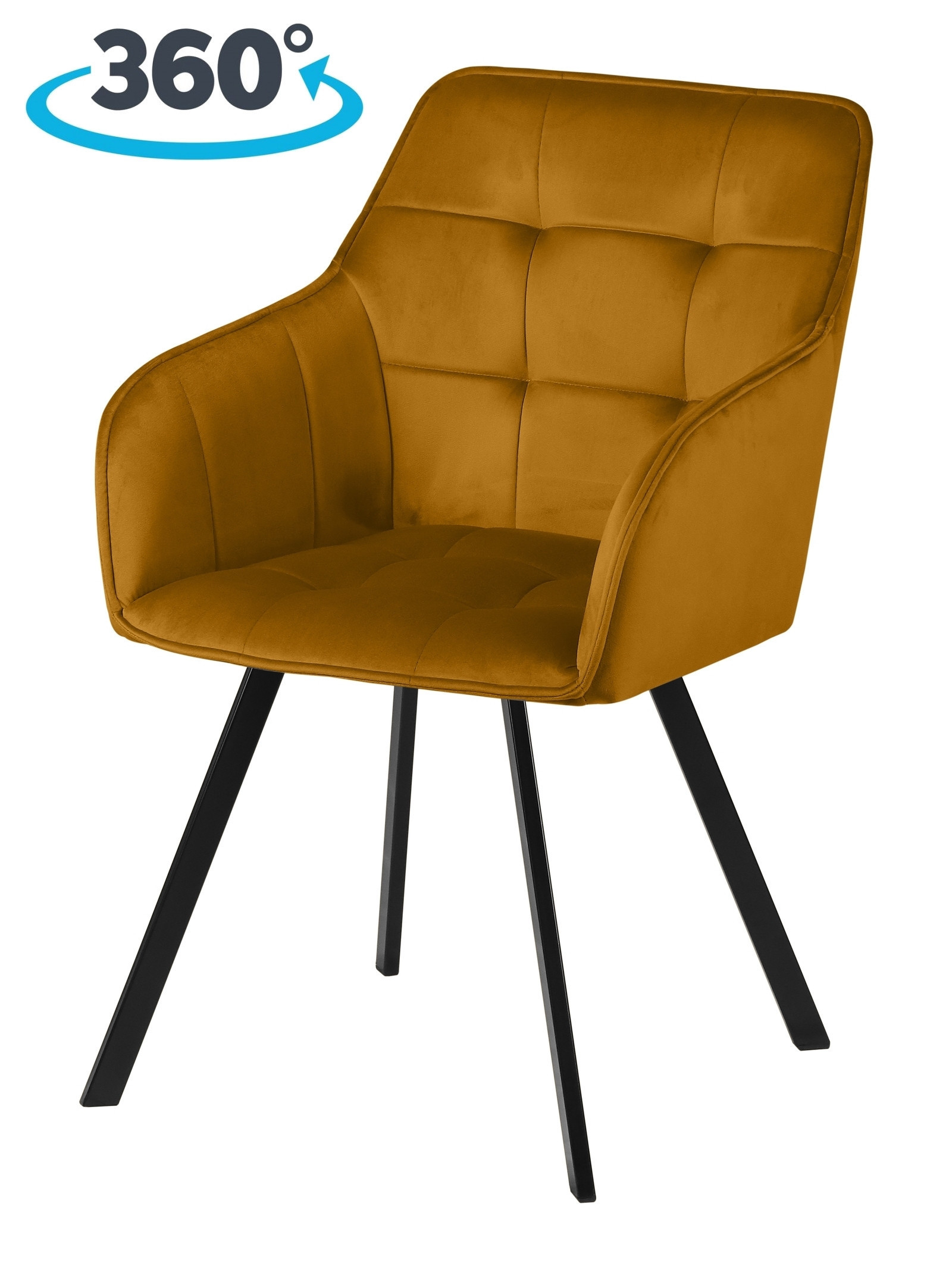 Комплект мягких кухонных стульев с подлокотниками на металлокаркасе Мони с поворотным механизмом - это современный стильный дизайн, функциональность, удобство и практичность. Поворотный механизм очень надежен и позволяет вращаться сиденью относительно ножек на 360 градусов. Он спроектирован лучшими инженерами таким образом, чтобы обеспечить комфортную эргономичную посадку и долгий период эксплуатации. Стул не только удобный, но и крепкий, он способен выдерживать ежедневные нагрузки, не теряя при этом свой привлекательный внешний вид. Надежный металлический каркас в основании стула, позволяет выдерживать нагрузку до 120 килограмм. Обивка износоустойчива, не линяет, не скатывается, не впитывает жидкость и легка в уходе. Она обладает эффектом антикоготь, так как велюр очень гладкий и имеет плотную основу, питомцы обычно равнодушны к такой обивке, потому что коготками не получается зацепиться за нити. Благодаря эргономичной посадке, мягкому и сохраняющему тепло велюру, он станет настоящей изюминкой Вашего интерьера и никого не сможет оставить равнодушным. Отличный вариант для интерьеров в скандинавском, современном, минималистическом стиле, а также в стиле лофт и модерн. Стул вращающийся Мони идеально подойдет для кухни, гостиной, спальни, рабочего кабинета, детской комнаты, а также для дачи, офиса, салона красоты, кафе или столовой. Крутящийся стул Мони является универсальным вариантом для любых пространств. Материал сиденья - фанера, металл, пенополиуретан, велюр. Материал ножек - металл. Поворотный механизм на подшипниках. Полная ширина стула - 53 см, ширина сиденья без учета подлокотников в самом широком месте - 43 см, полная глубина стула - 58 см, глубина сиденья - 43 см, высота стула - 84 см, высота сиденья - 46 см. Стулья поставляются в разобранном виде. В комплекте идёт инструкция и крепеж для сборки.
