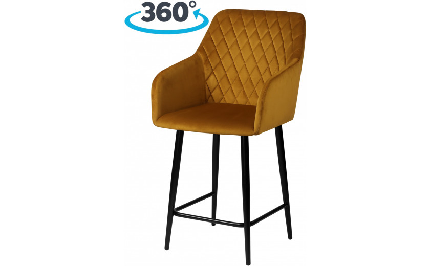 Комплект мягких полубарных стульев с подлокотниками на металлокаркасе Барли с поворотным механизмом - это современный стильный дизайн, функциональность, удобство и практичность. Поворотный механизм очень надежен и позволяет вращаться сиденью относительно ножек на 360 градусов. Он спроектирован лучшими инженерами таким образом, чтобы обеспечить комфортную эргономичную посадку и долгий период эксплуатации. Стул не только удобный, но и крепкий, он способен выдерживать ежедневные нагрузки, не теряя при этом свой привлекательный внешний вид. Надежный металлический каркас в основании стула, позволяет выдерживать нагрузку до 120 килограмм. Обивка износоустойчива, не линяет, не скатывается, не впитывает жидкость и легка в уходе. Она обладает эффектом антикоготь, так как велюр очень гладкий и имеет плотную основу, питомцы обычно равнодушны к такой обивке, потому что коготками не получается зацепиться за нити. Благодаря эргономичной посадке, мягкому и сохраняющему тепло велюру, он станет настоящей изюминкой Вашего интерьера и никого не сможет оставить равнодушным. Отличный вариант для интерьеров в скандинавском, современном, минималистическом стиле, а также в стиле лофт и модерн. Полубарный вращающийся стул Барли идеально подойдет для кухни, гостиной, спальни, рабочего кабинета, детской комнаты, а также для дачи, офиса, салона красоты, кафе или столовой. Полубарный крутящийся стул Барли является универсальным вариантом для любых пространств. Материал сиденья - фанера, металл, пенополиуретан, велюр. Материал ножек - металл. Поворотный механизм на подшипниках. Полная ширина стула - 53 см, ширина сиденья без учета подлокотников в самом широком месте - 43 см, полная глубина стула - 58 см, глубина сиденья - 43 см, высота стула - 102 см, высота сиденья - 65 см. Стулья поставляются в разобранном виде. В комплекте идёт инструкция и крепеж для сборки.